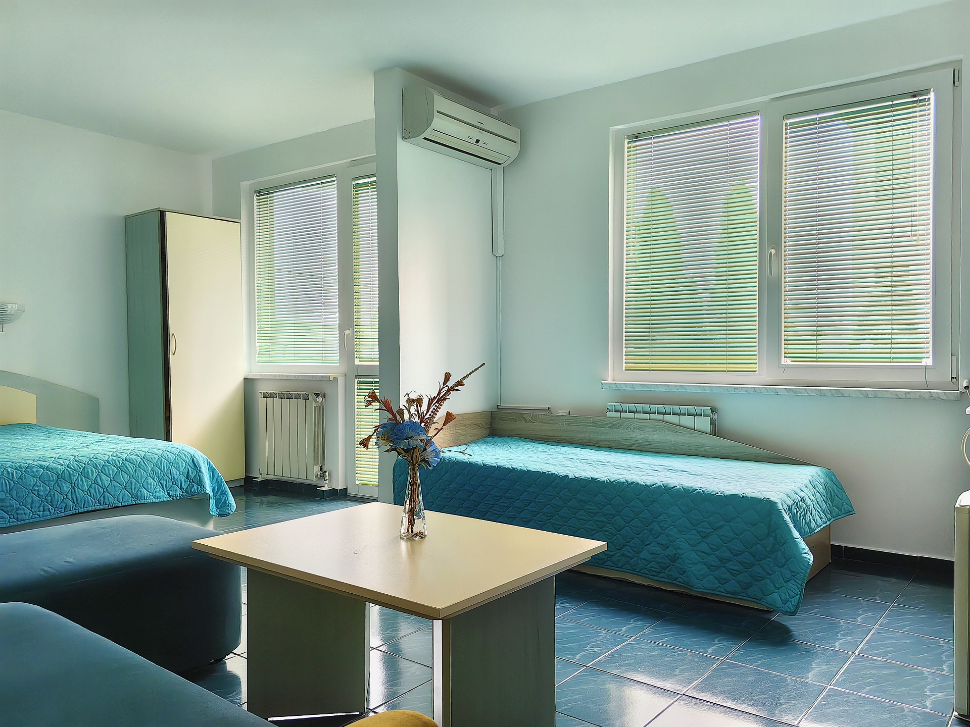 санитарен възел, балкон, климатик,