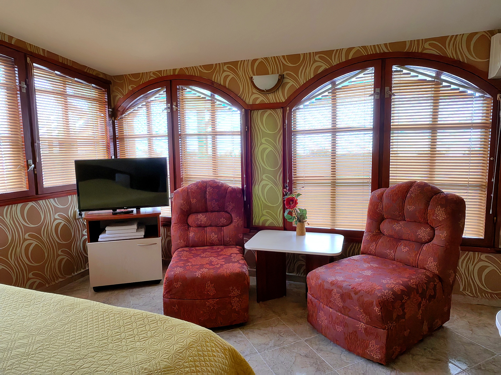 мебел, мини-бар,сешоар, безплатен Wi-Fi. Терасата е
